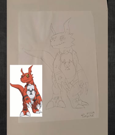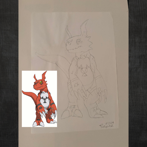 I managed to dig out a few drawing from my sketching days (after an hour of searching), this one being the Digimon Guilmon, which I didn’t know at the time. I just liked dinosaurs. Almost thought I might have traced this one but turns out I was just decent at copying (I messed up the feet).